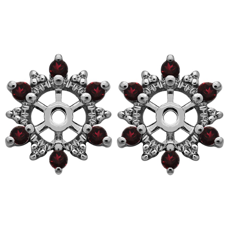 These earring jackets feature 12 round, prong set stones weighing 0.24 carats. Earring jackets are sold in pairs. They weigh approximately 2.17 grams. This pair of earring jackets will fit the following size studs (weights are per STONE carat weight, not PAIR of earrings carat weight):Made to fit a round stud earring from 0.15 up to 0.5 carats or a princess cut stud from 0.25 up to 0.75 carats (per stud).
