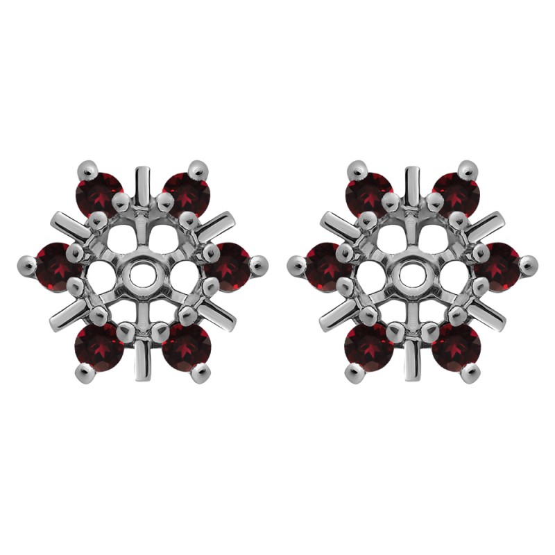 These earring jackets feature 12 round, prong set stones weighing 0.48 carats. Earring jackets are sold in pairs. They weigh approximately 2.883 grams. This pair of earring jackets will fit the following size studs (weights are per STONE carat weight, not PAIR of earrings carat weight):Made to fit a round stud earring from 0.3 up to 0.75 carats or a princess cut stud from 0.5 up to 0.75 carats (per stud).