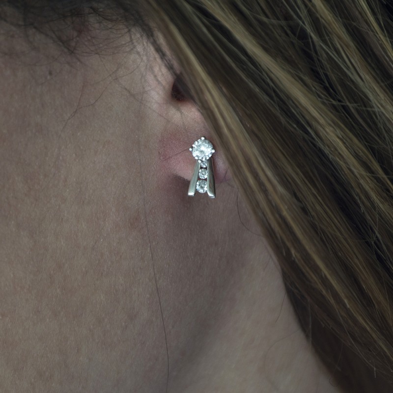 These earring jackets feature 6 round, prong set stones weighing 0.2 carats. Earring jackets are sold in pairs. They weigh approximately 1.8445 grams. This pair of earring jackets will fit the following size studs (weights are per STONE carat weight, not PAIR of earrings carat weight):Made to fit a round stud earring from 0.15 up to 0.25 carats or a princess cut stud from 0.25 up to 0.3 carats (per stud).