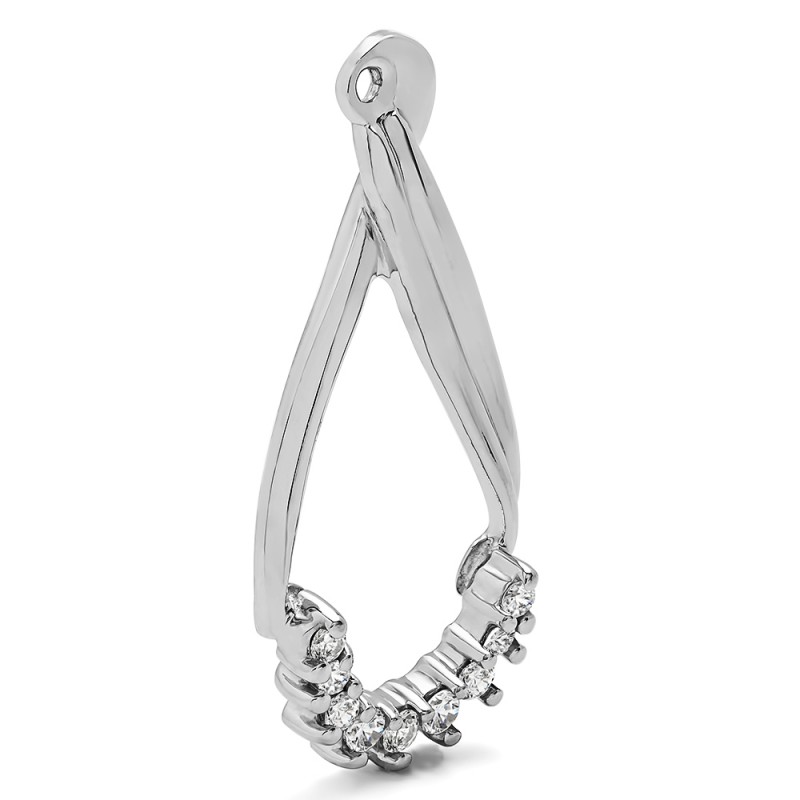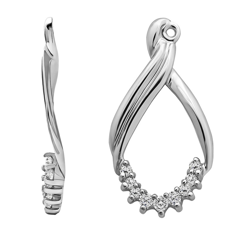 These earring jackets feature 18 round, prong set stones weighing 0.21 carats. Earring jackets are sold in pairs. They weigh approximately 3.6425 grams. This pair of earring jackets will fit the following size studs (weights are per STONE carat weight, not PAIR of earrings carat weight):Made to fit a round stud earring from 0.15 up to 0.75 carats or a princess cut stud from 0.25 up to 1 carats (per stud).