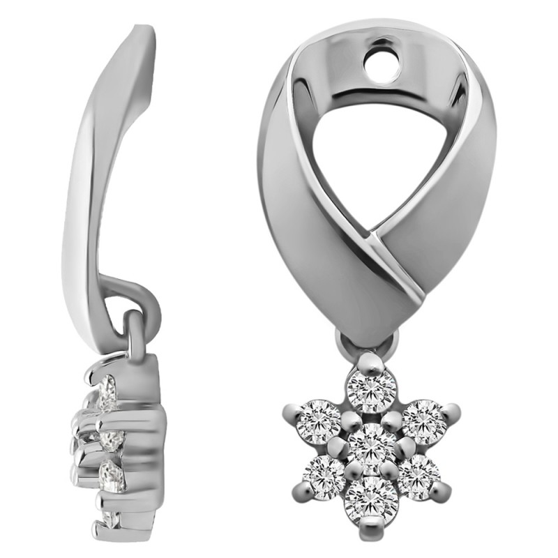 These earring jackets feature 14 round, prong set stones weighing 0.22 carats. Earring jackets are sold in pairs. They weigh approximately 3.0535 grams. This pair of earring jackets will fit the following size studs (weights are per STONE carat weight, not PAIR of earrings carat weight):Made to fit a round stud earring from 0.15 up to 0.25 carats or a princess cut stud from 0.25 up to 0.3 carats (per stud).