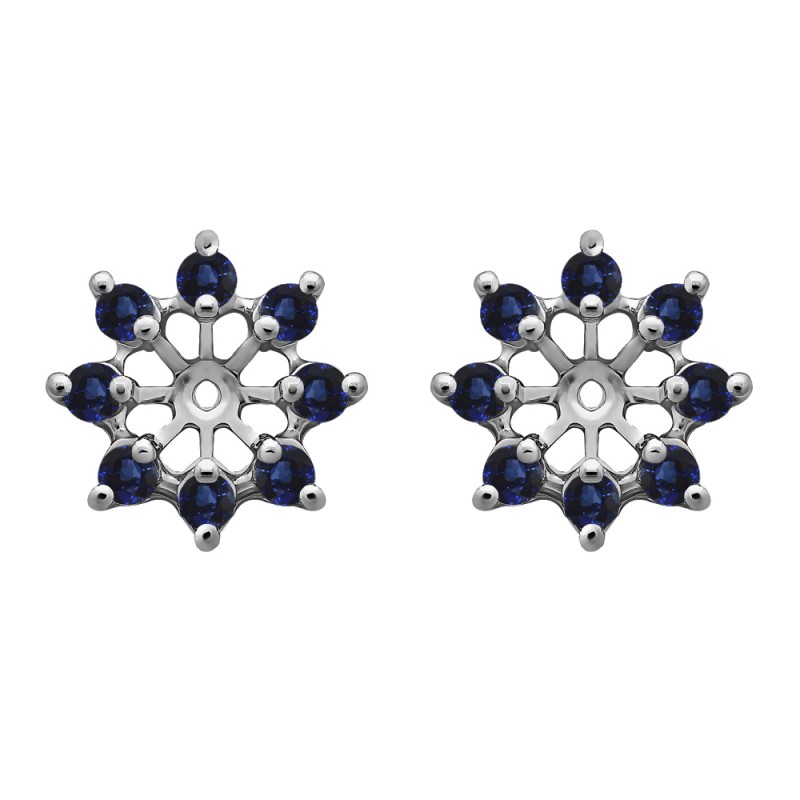 These earring jackets feature 16 round, prong set stones weighing 0.32 carats. Earring jackets are sold in pairs. They weigh approximately 3.875 grams. This pair of earring jackets will fit the following size studs (weights are per STONE carat weight, not PAIR of earrings carat weight):Made to fit a round stud earring from 0.25 up to 0.5 carats or a princess cut stud from 0.4 up to 0.75 carats (per stud).