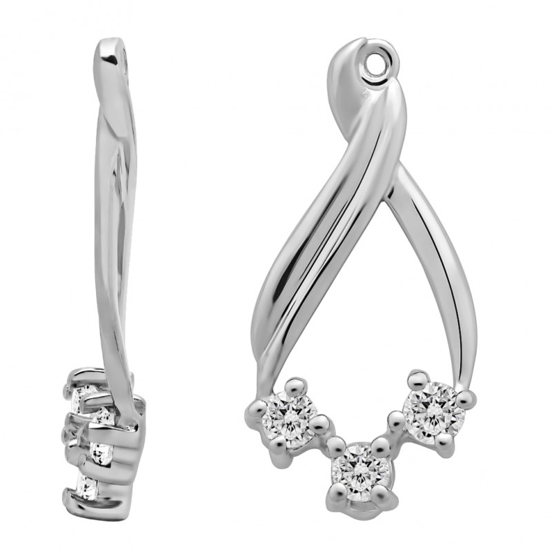 These earring jackets feature 6 round, prong set stones weighing 0.52 carats. Earring jackets are sold in pairs. They weigh approximately 4.402 grams. This pair of earring jackets will fit the following size studs (weights are per STONE carat weight, not PAIR of earrings carat weight):Made to fit a round stud earring from 0.15 up to 0.5 carats or a princess cut stud from 0.25 up to 0.75 carats (per stud).