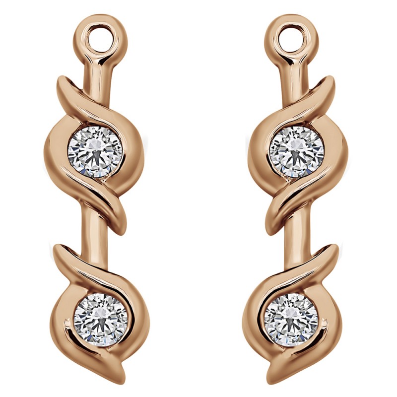 These earring jackets feature 4 round, prong set stones weighing 0.2 carats. Earring jackets are sold in pairs. They weigh approximately 1.99 grams. This pair of earring jackets will fit the following size studs (weights are per STONE carat weight, not PAIR of earrings carat weight):Made to fit a round stud earring from 0.15 up to 0.25 carats or a princess cut stud from 0.25 up to 0.3 carats (per stud).