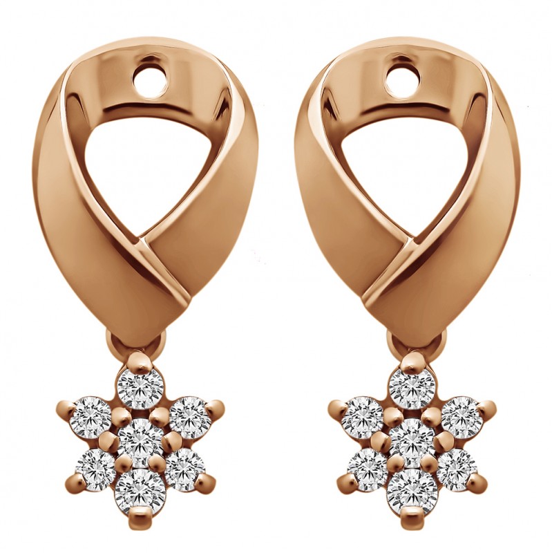 These earring jackets feature 14 round, prong set stones weighing 0.22 carats. Earring jackets are sold in pairs. They weigh approximately 3.06 grams. This pair of earring jackets will fit the following size studs (weights are per STONE carat weight, not PAIR of earrings carat weight):Made to fit a round stud earring from 0.15 up to 0.25 carats or a princess cut stud from 0.25 up to 0.3 carats (per stud).