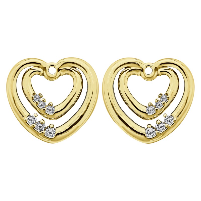 These earring jackets feature 12 round, prong set stones weighing 0.22 carats. Earring jackets are sold in pairs. They weigh approximately 5.58 grams. This pair of earring jackets will fit the following size studs (weights are per STONE carat weight, not PAIR of earrings carat weight):Made to fit a round stud earring from 0.15 up to 0.25 carats or a princess cut stud from 0.25 up to 0.3 carats (per stud).
