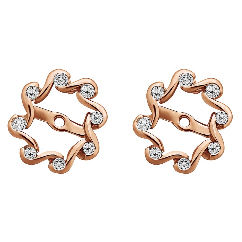 These earring jackets feature 16 round, prong set stones weighing 0.24 carats. Earring jackets are sold in pairs. They weigh approximately 1.54 grams. This pair of earring jackets will fit the following size studs (weights are per STONE carat weight, not PAIR of earrings carat weight):Made to fit a round stud earring from 0.75 up to 1.25 carats or a princess cut stud from 1 up to 2 carats (per stud).