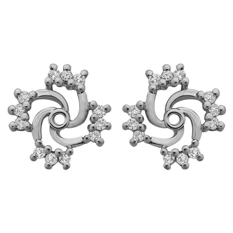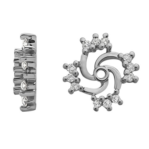 These earring jackets feature 24 round, prong set stones weighing 0.24 carats. Earring jackets are sold in pairs. They weigh approximately 2.66 grams. This pair of earring jackets will fit the following size studs (weights are per STONE carat weight, not PAIR of earrings carat weight):Made to fit a round stud earring from 0.5 up to 0.75 carats or a princess cut stud from 0.75 up to 1 carats (per stud).
