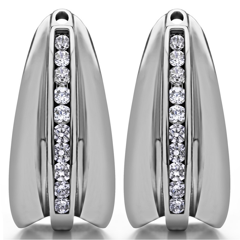 These earring jackets feature 18 round, prong set stones weighing 0.315 carats. Earring jackets are sold in pairs. They weigh approximately 4.58 grams. This pair of earring jackets will fit the following size studs (weights are per STONE carat weight, not PAIR of earrings carat weight):Made to fit a round stud earring from 0.25 up to 0.75 carats or a princess cut stud from 0.3 up to 0.75 carats (per stud).