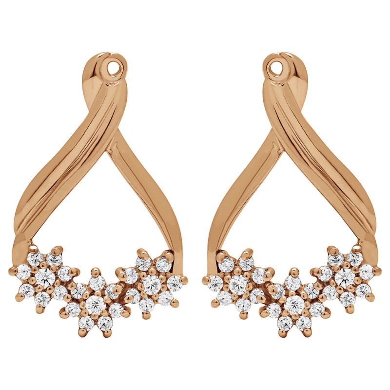 These earring jackets feature 48 round, prong set stones weighing 0.51 carats. Earring jackets are sold in pairs. They weigh approximately 3.71 grams. This pair of earring jackets will fit the following size studs (weights are per STONE carat weight, not PAIR of earrings carat weight):Made to fit a round stud earring from 0.15 up to 0.75 carats or a princess cut stud from 0.25 up to 1 carats (per stud).