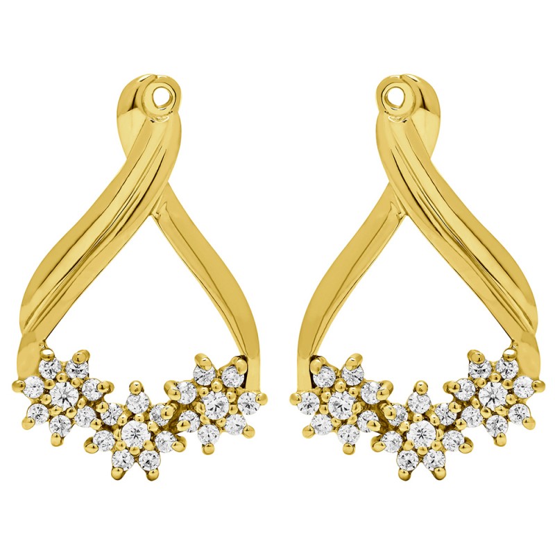These earring jackets feature 48 round, prong set stones weighing 0.51 carats. Earring jackets are sold in pairs. They weigh approximately 3.71 grams. This pair of earring jackets will fit the following size studs (weights are per STONE carat weight, not PAIR of earrings carat weight):Made to fit a round stud earring from 0.15 up to 0.75 carats or a princess cut stud from 0.25 up to 1 carats (per stud).