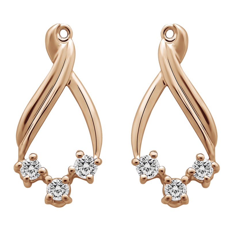 These earring jackets feature 6 round, prong set stones weighing 0.52 carats. Earring jackets are sold in pairs. They weigh approximately 4.41 grams. This pair of earring jackets will fit the following size studs (weights are per STONE carat weight, not PAIR of earrings carat weight):Made to fit a round stud earring from 0.15 up to 0.5 carats or a princess cut stud from 0.25 up to 0.75 carats (per stud).