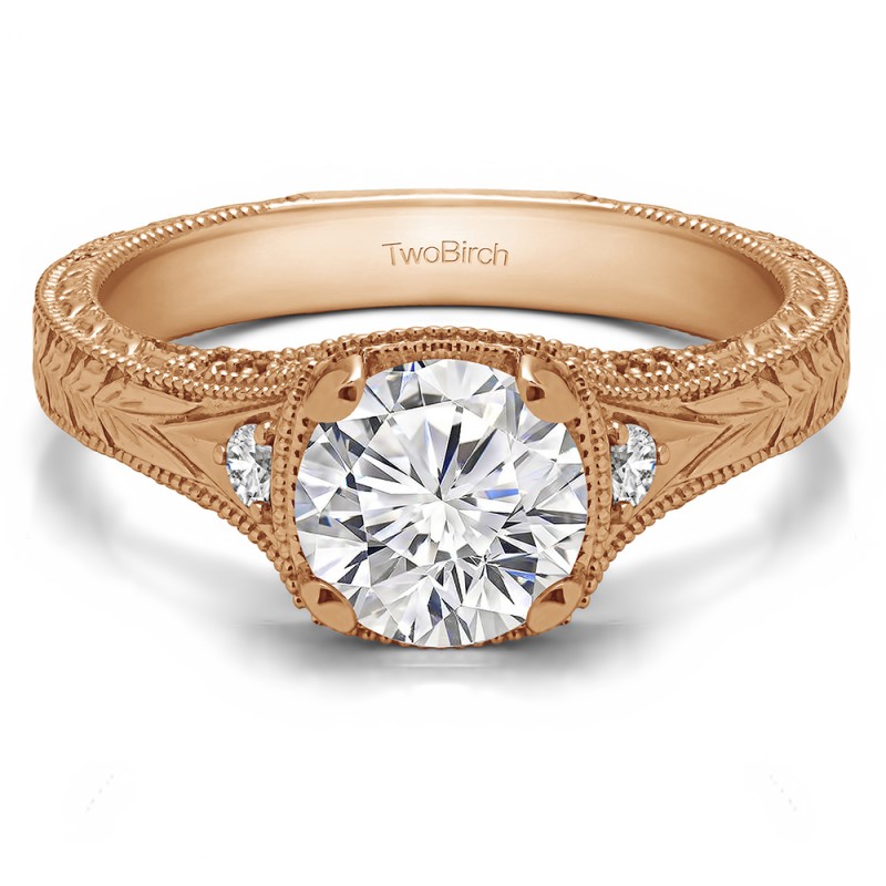 1.31 Ct. Vintage Three Stone Engagement Ring with Engraved Shank in Rose Gold