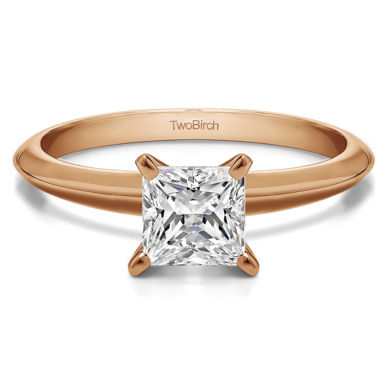This solitaire engagement ring features a princess cut center stone weighing 1 carat. The center stone is set with a four prong setting. Each center diamond you select will have the following minimum specifications: Good Cut, Symmetry, Proportions and No Fluorescence. Since we do not keep center diamonds in stock, please allow 1 to 2 weeks for production of your engagement ring and procurement of the center diamond. The band measures approximately 2 millimeters and weighs about 3.15 grams.