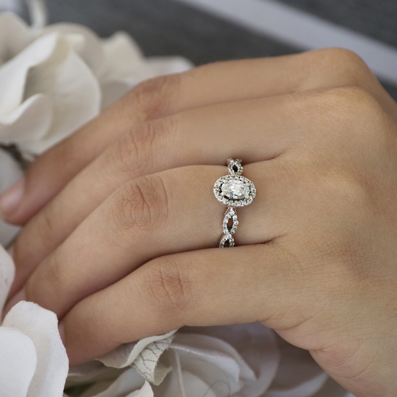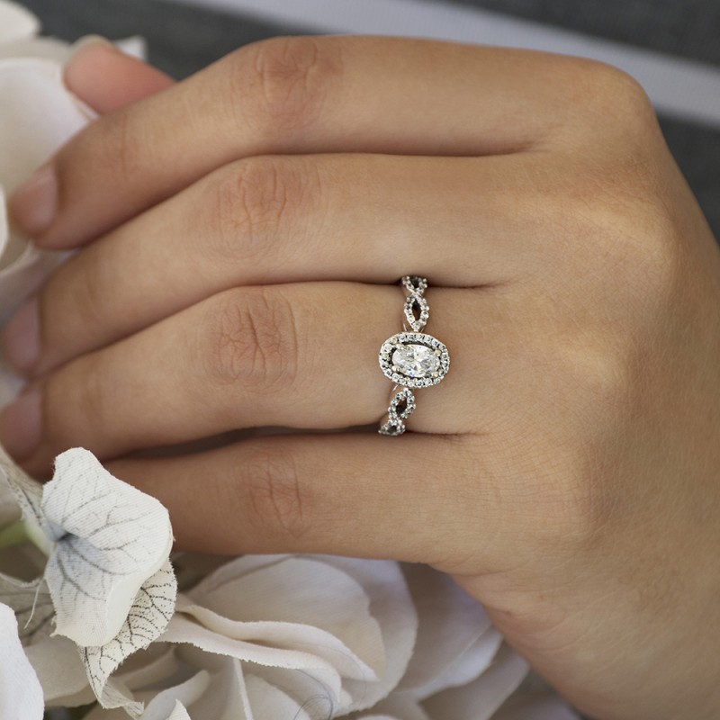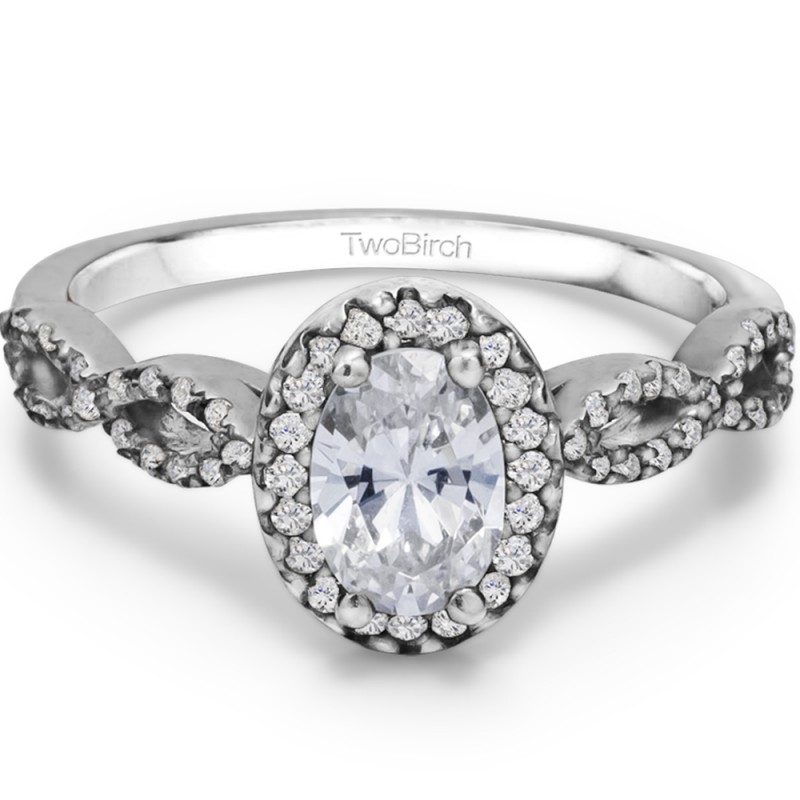0.74 Ct. Oval Halo Engagement Ring with Infinity Shank