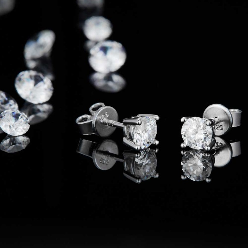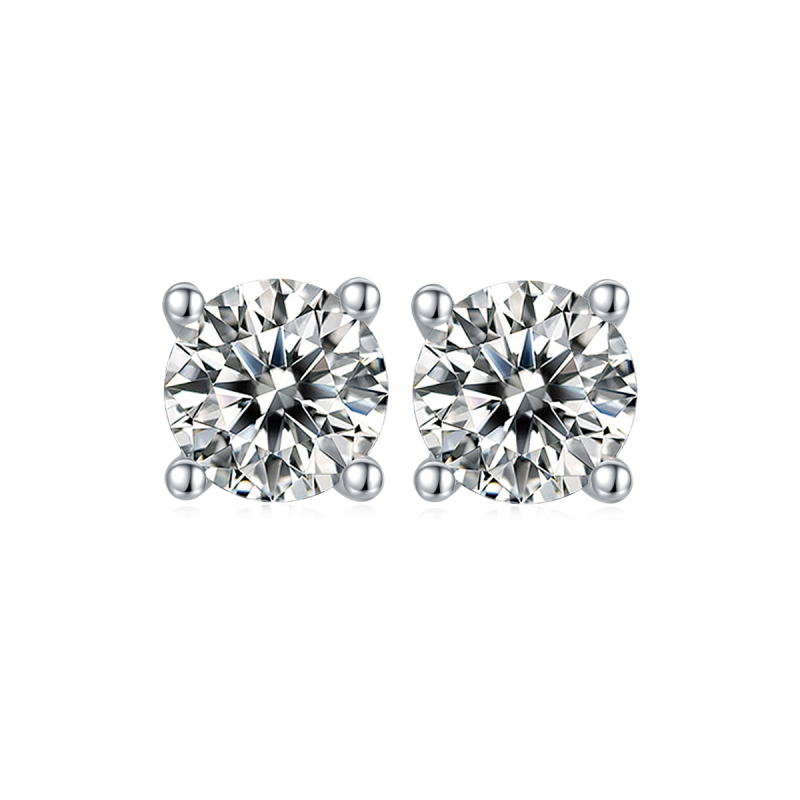 | Key Product Features | Stunning platinum plated stud earrings featuring two round brilliant cut moissanite stones measuring 5 mm each. |