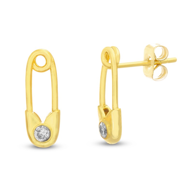 | Key Product Features | Stunning 18k yellow gold microplated sterling silver safety pin shaped earrings featuring posts and tension backs. The earrings measure about 1/2 inch in length and 1/8 of an inch in width. Small and simple cute earrings make the perfect gift! These safety pin earring add a subtle accessory that you can wear for everyday fun and fashion. |