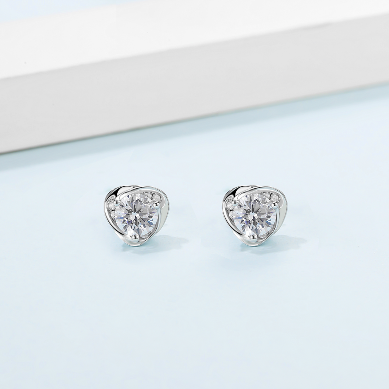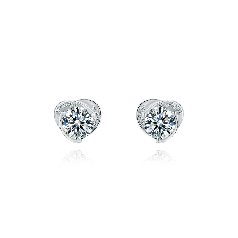 Key Product Features Stunning platinum plated stud earrings featuring two round brilliant cut moissanite stones measuring 5 mm each. A 5 mm moissanite is a 1/2 carat diamond equivalent weight. Each stone is certified by GRA & the certificate number is laser inscribed on the girdle.