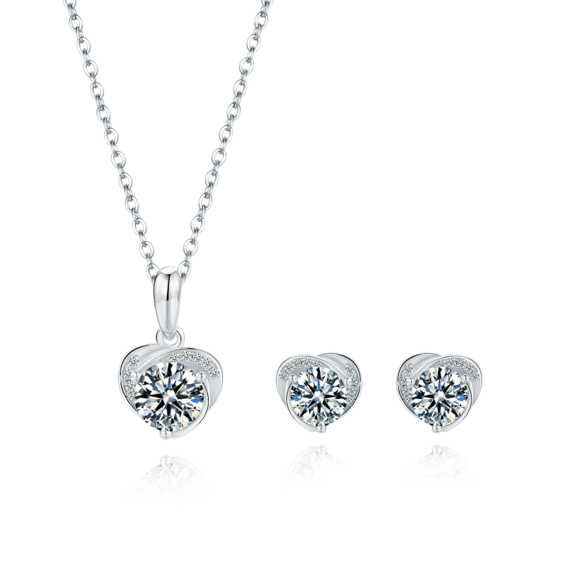 Key Product Features This jewelry set features one pair of stud earrings and a matching pendant on a chain.