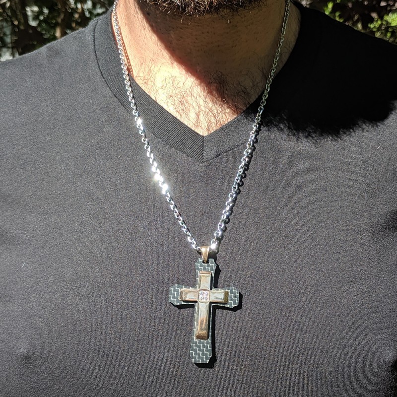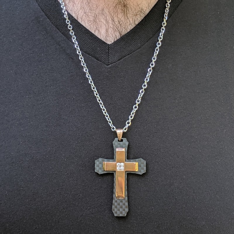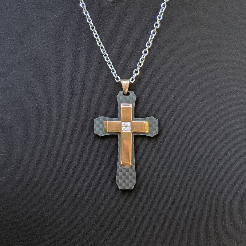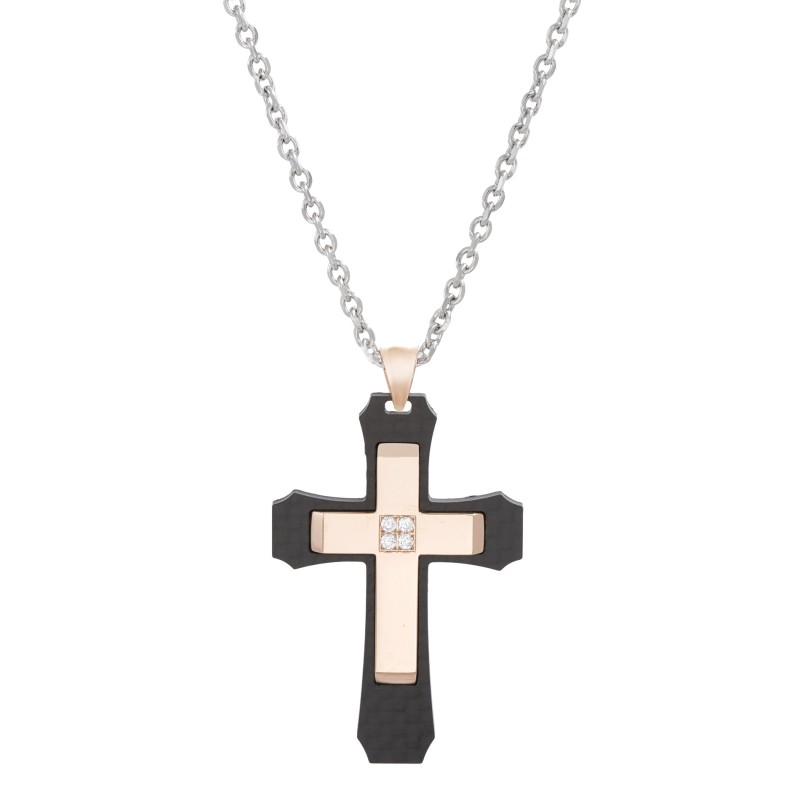 | Key Product Features | The chain and cross are made in stainless steel with rose plating and black carbon fiber. |