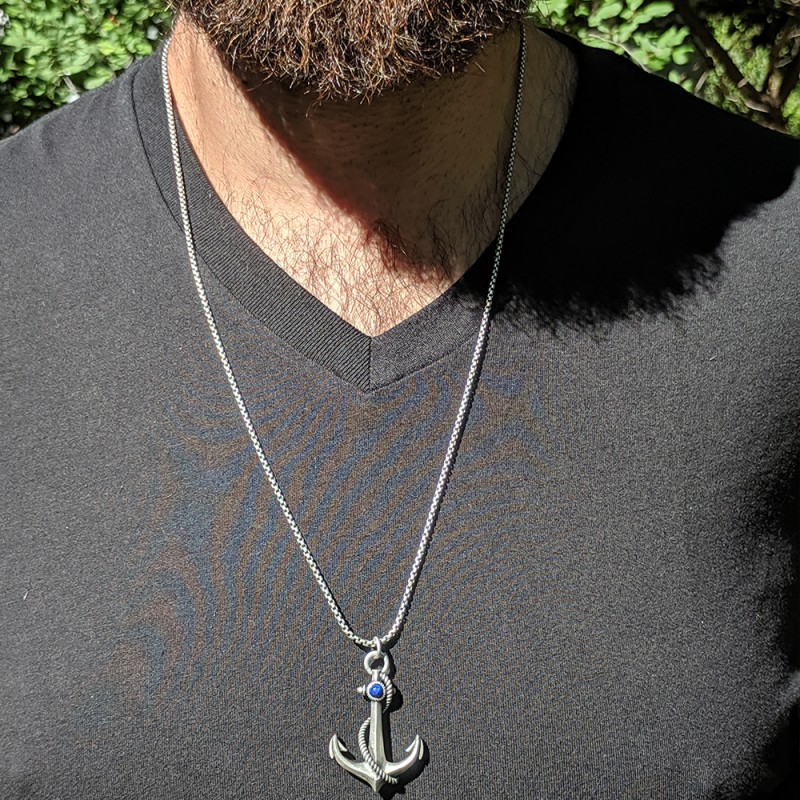Stainless Steel Necklace is made with high quality material, matte finish and is hypo allergenic. The metal is does not tarnish, oxidize or scratch. Anchor Nautical Necklace: The Rope wraps around the Anchor Pendant and little details on it, making it more like a real anchor. This is the perfect gift for Navy, Crew, Sailor or Pirate or sea lover. Necklace Size--Anchor pendant: 1.5 Inches x 1 Inch, Chain length 24 Inches, adjustable to 25 Inches. Chain: Round Link Style Chain which feels smooth, with a sturdy lobster clasps. It is comfortable to wear without falling off.
