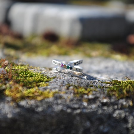 Birthstone rings take on a whole new meaning due to the meaning behind the stones. Say something beautiful with a birthstone ring by TwoBirch. Add four names or mantras and pick the stones that have meaning to you.