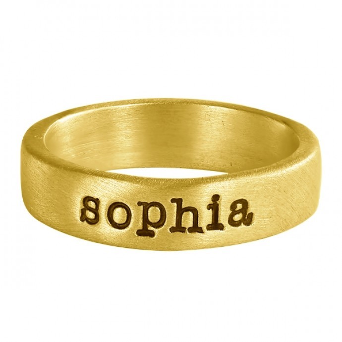 This TwoBirch stamped ring can be customized to fit up to 9 Letters. You can have your name stamped on the ring, or have a mantra that represents you put on this ring. This personalized name ring comes in sterling silver, rose plated sterling silver, yellow plated sterling silver, 10k white gold, 10k rose gold, 10k yellow gold, 14k white gold, 14k rose gold and 14k yellow gold. This stunning name ring is made in sizes 4 to 15 in 1/2 size intervals. You can personalize this ring with the letters of your choice, and metal type you would like. Every name ring created by TwoBirch is handcrafted just for you in the metal type, letters, and finger size you select.