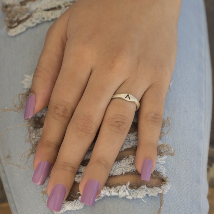This TwoBirch hand stamped round initial ring can be customized to fit any upper case letter. This ring is the modern take on the classic signet ring. This custom initial ring comes in sterling silver, rose plated sterling silver, yellow plated sterling silver, 10k white gold, 10k rose gold, 10k yellow gold, 14k white gold, 14k rose gold and 14k yellow gold. This stunning name ring is made in sizes 4 to 15 in 1/2 size intervals. You can personalize this ring with the letter of your choice, and metal type you would like. Every initial ring created by TwoBirch is handcrafted just for you in the metal type, letters, and finger size you select.