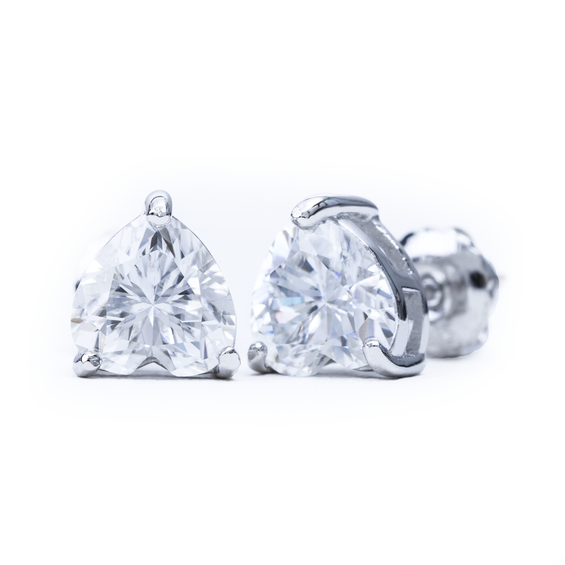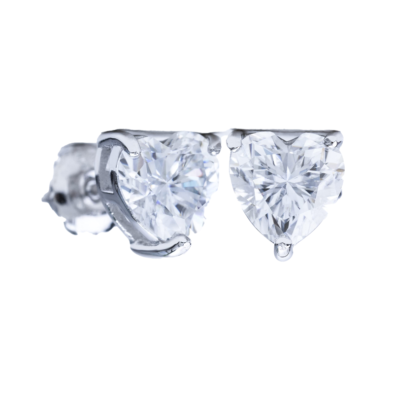 | Key Product Features | These TwoBirch Heart moissanite studs are set in 18k white gold plated sterling silver. |