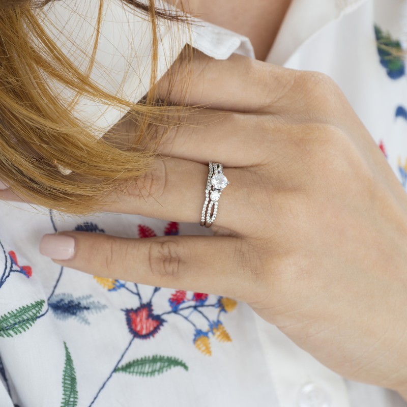 This wedding ring is made to match with the engagement ring below. If you already have an engagement ring, you can add PerfectFit onto your order. We will send you images of your engagment ring with our matching band. You can consider it a virtual ring fitting.