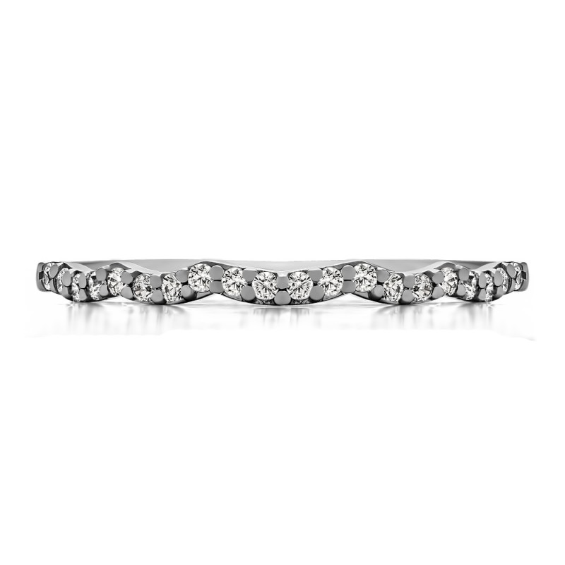 This wedding ring is made to match with the engagement ring below. If you already have an engagement ring, you can add PerfectFit onto your order. We will send you images of your engagment ring with our matching band. You can consider it a virtual ring fitting.