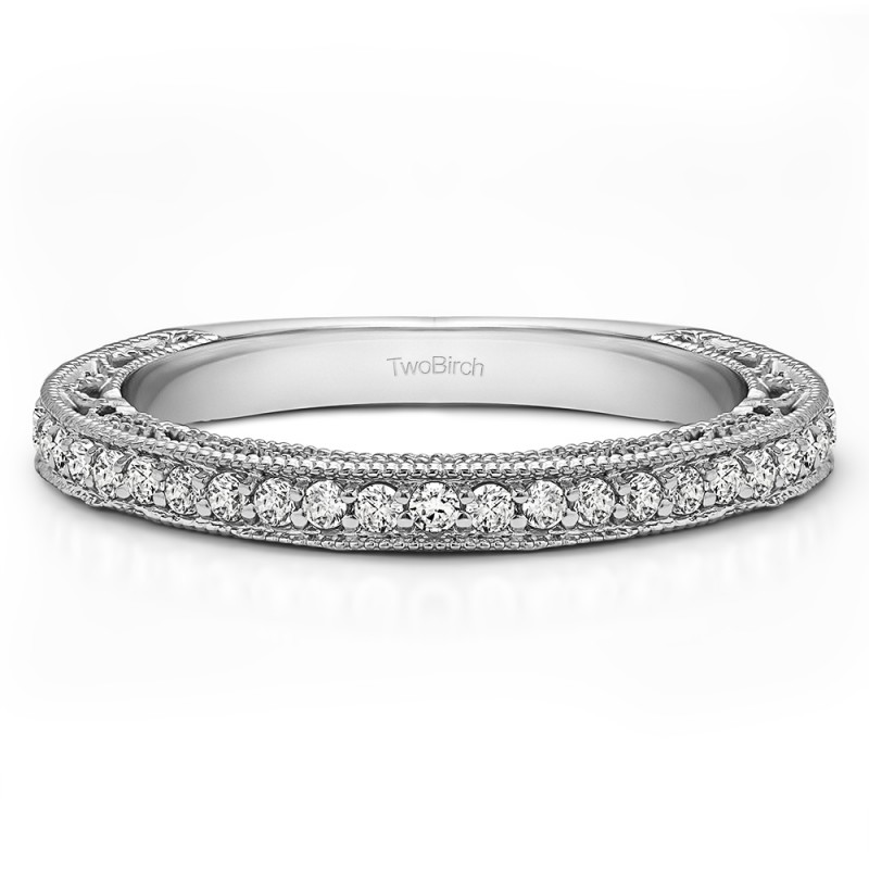 This wedding ring is made to match with the engagement ring below. If you already have an engagement ring, you can add PerfectFit onto your order. We will send you images of your engagment ring with our matching band. You can consider it a virtual ring fitting.