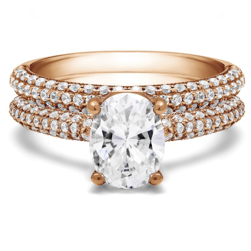 This wedding ring is made to match with the engagement ring below. If you already have an engagement ring, you can add PerfectFit onto your order. We will send you images of your engagment ring with our matching band. You can consider it a virtual ring fitting.