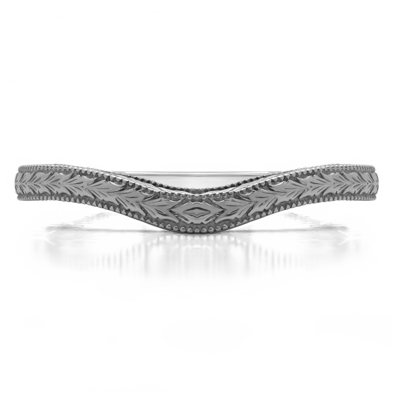 This wedding ring is made to match with the engagement ring below. If you already have an engagement ring, you can add PerfectFit onto your order. We will send you images of your engagment ring with our matching band. You can consider it a virtual ring fitting.