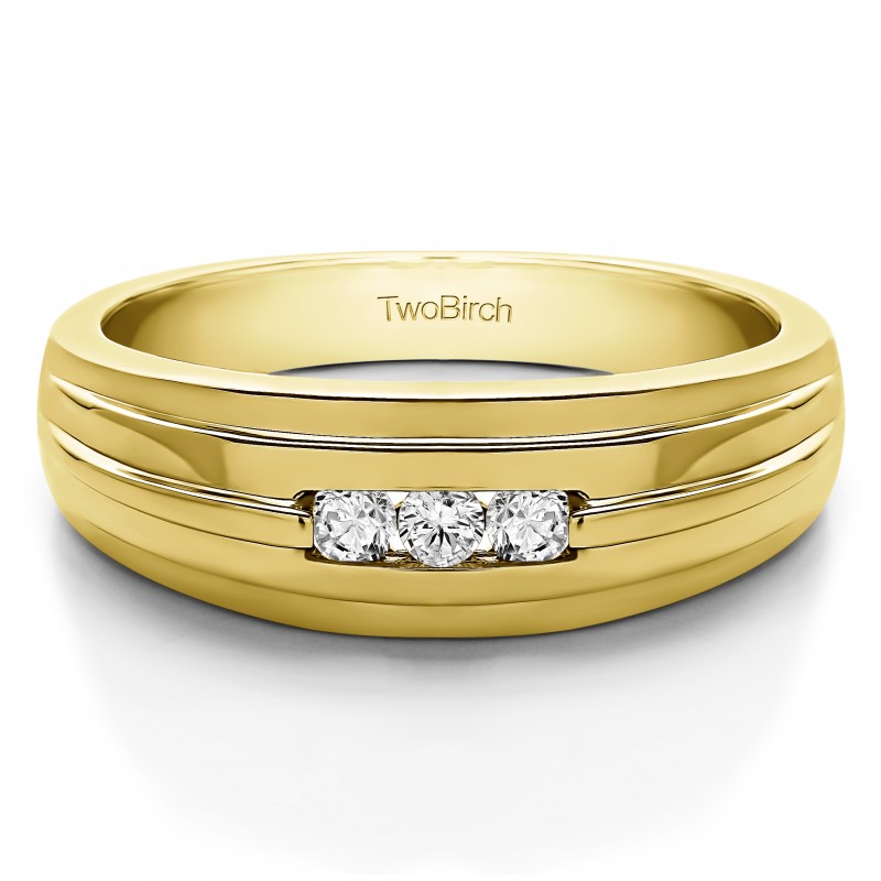 0.24 Ct. Three Stone Channel Set Men's Ring in Yellow Gold