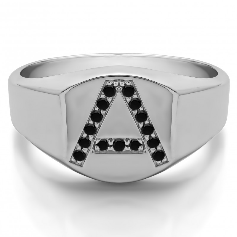This men's ring features 10, black round Prong set stones. The band measures 5.5mm in total width. The total combined carat weight is 0.1 carats. This listing features black cubic zirconia or black diamonds. This men's ring weighs 15.2 grams and features a comfort fit band. The total weight of this ring will vary based on the letter you select. The average stone weight is about .10 carats.