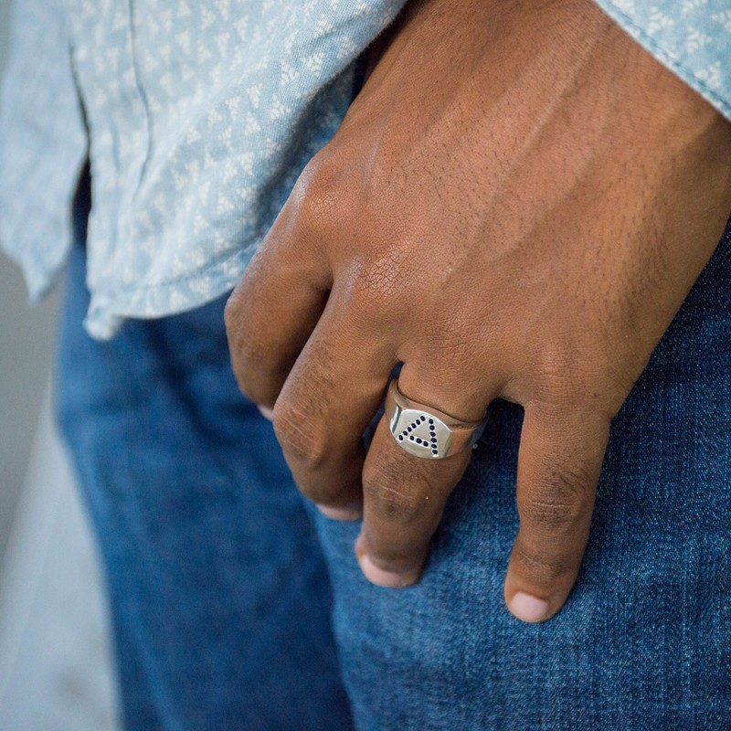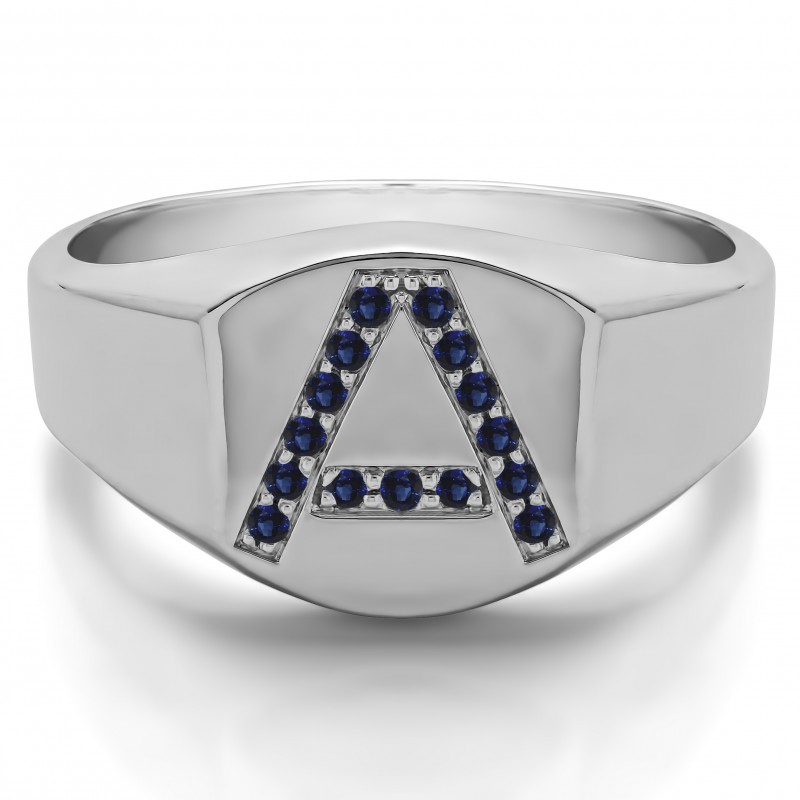 0.1 Ct. Sapphire Personalized Men's Letter Ring Available in A to Z