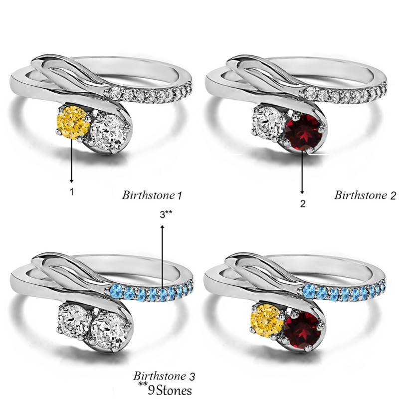| Key Product Features | Select from drop down menu to choose where each birthstone will go. You can also make the selections for metal color, metal type, side stone from the drop down menu. |