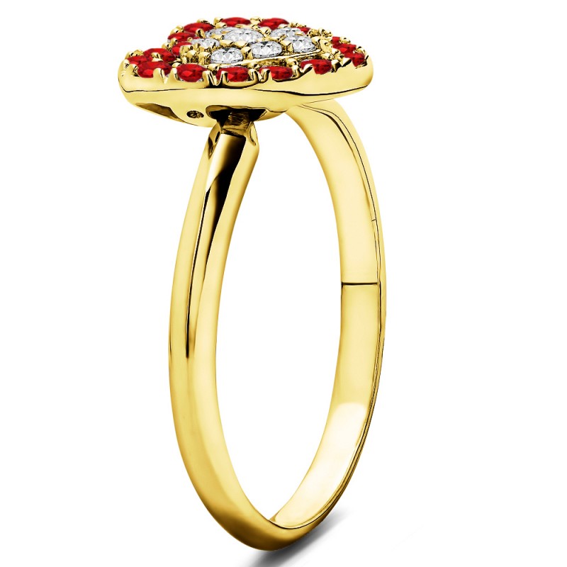 For the one you love, pledge your adoration with this gorgeous promise ring. Polished to a perfect shine, this ring will sparkle as brightly as your promise. You will be amazed at the high quality of the gemstones set in the beautiful first class metal. Heart promise rings are the perfect way to start your future.