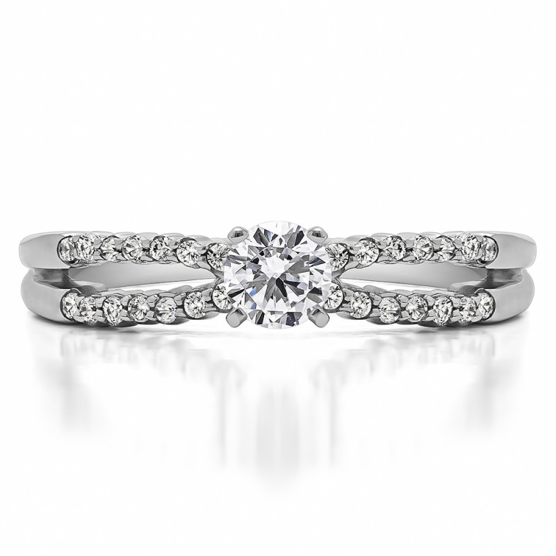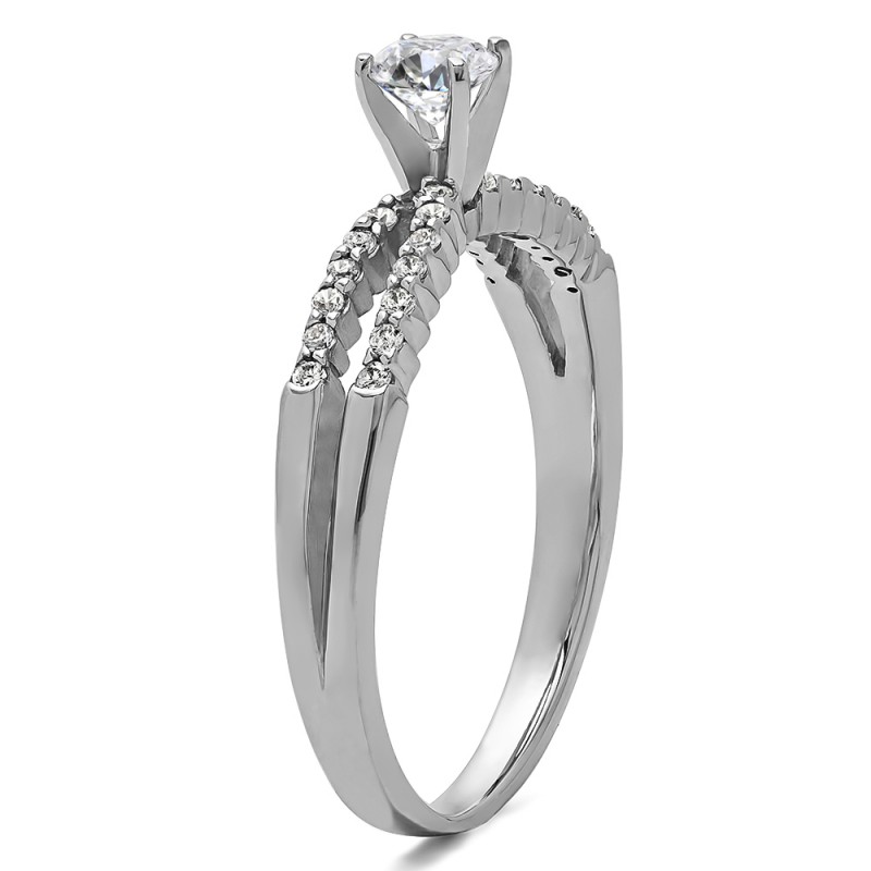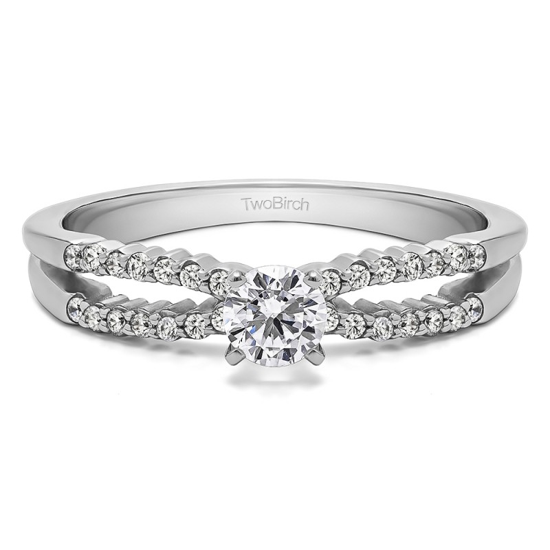 This delicate promise ring features a split shank which is the perfect representation of two parts coming together. There is no better way to represent a promise than with this ring and the significance you can see in its design. You will be amazed at the high quality of the Diamonds G-H I2-I3 set in the beautiful 10k White Gold. 10k White Gold Promise Rings by TwoBirch are built to last a lifetime.