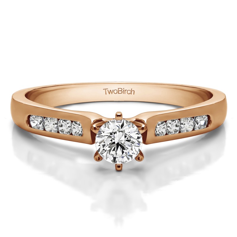 This promise ring features traditional style setting which features channel set stones down both sides of the center stone. The stones are set both securely and beautifully, making it the perfect promise ring. You will be amazed at the high quality of the Diamonds G-H I2-I3 set in the beautiful 10k Rose Gold. 10k Rose Gold Promise Rings by TwoBirch are built to last a lifetime.