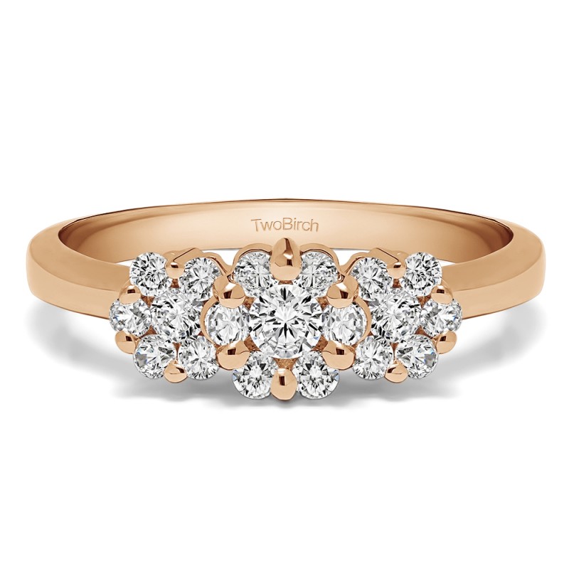 This gorgeous promise ring features three flower shaped clusters which are dainty yet stunning. The significance behind this promise ring is found in the meaning of the clusters. They represent the past, present and future. This is a promise ring perfect to honor the past, enjoy the present and promise a perfect future. You will be amazed at the high quality of the Diamonds G-H I2-I3 set in the beautiful 10k Rose Gold. 10k Rose Gold Promise Rings by TwoBirch are built to last a lifetime.