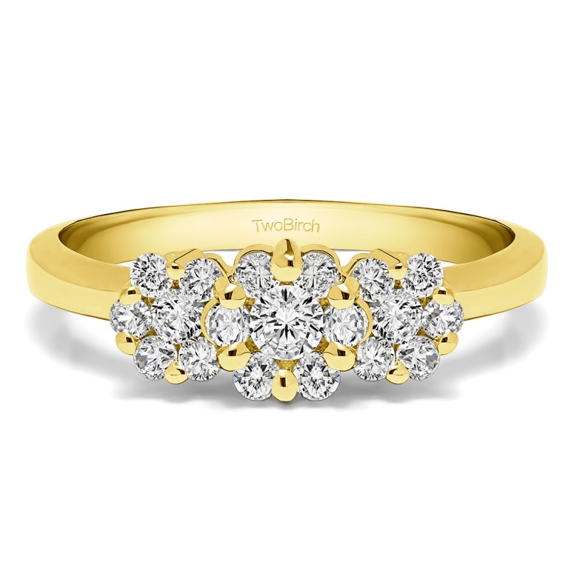 This gorgeous promise ring features three flower shaped clusters which are dainty yet stunning. The significance behind this promise ring is found in the meaning of the clusters. They represent the past, present and future. This is a promise ring perfect to honor the past, enjoy the present and promise a perfect future. You will be amazed at the high quality of the Diamonds G-H I2-I3 set in the beautiful 10k Yellow gold. 10k Yellow gold Promise Rings by TwoBirch are built to last a lifetime.