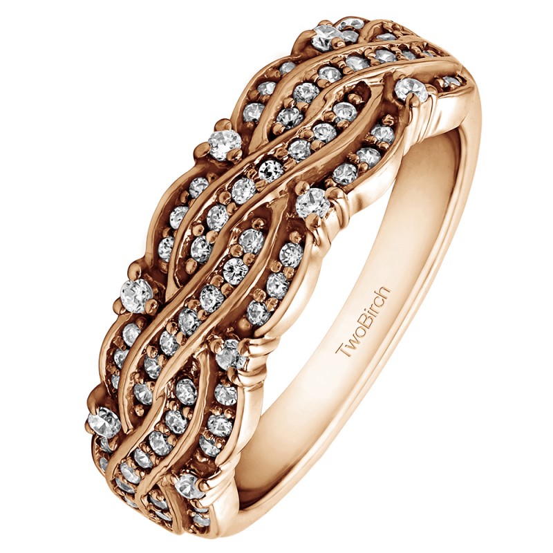 This promise ring is the perfect way for you to show your everlasting love for her. It features two bands that overlap, which is the perfect way to represent how your lives came together. It is modern in design but traditional in meaning. You will be amazed at the high quality of the Diamonds G-H I2-I3 set in the beautiful 10k Rose Gold. 10k Rose Gold Promise Rings by TwoBirch are built to last a lifetime.