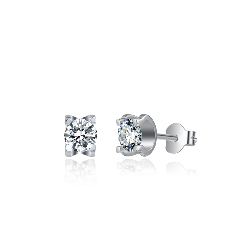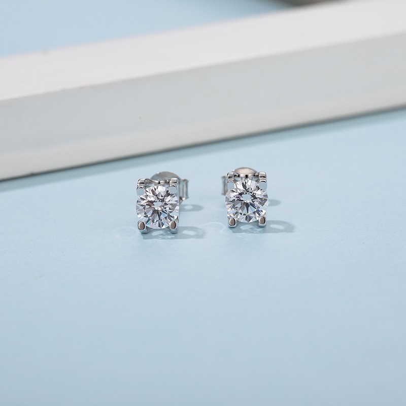 | Key Product Features | Stunning platinum plated stud earrings featuring two round brilliant cut moissanite stones measuring 5 mm each. |
