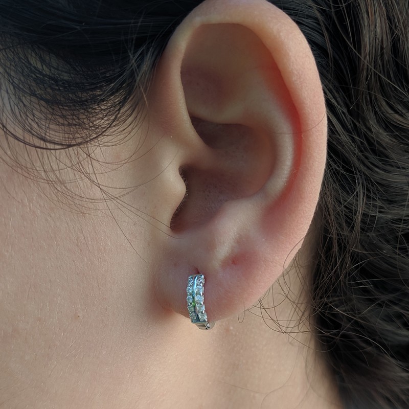 These adorable mini Small Hoops are cute and perfect for every day wear. They feature a double row of AAA+ quality cubic zirconia set in solid sterling silver with 14k gold plating to avoid tarnish.