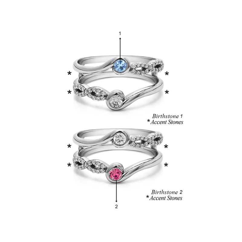 | Key Product Features | Select from drop down menu to choose where each birthstone will go. You can also make the selections for metal color, metal type, side stone from the drop down menu. |
