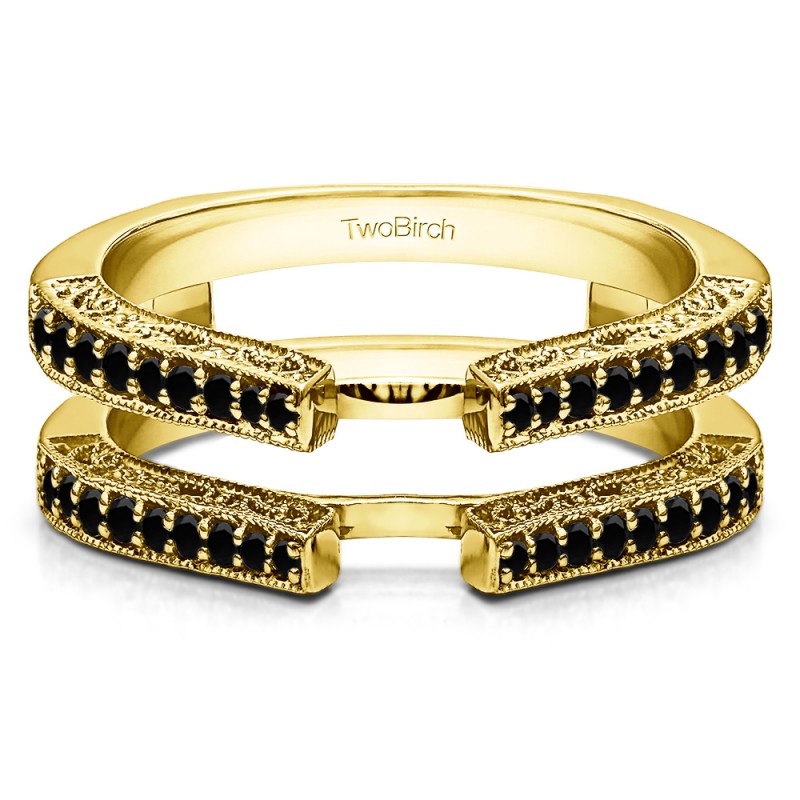 This wedding ring guard has 36 round, channel set stones. Each band measures 2 millimeters wide. This ring guard has 0.29 carats total weight. It is made to fit a round solitaire from 0.75 carats to 1.5, or a princess cut solitaire from 1 up to 2, or a marquise solitaire from 0.5 up to 1 carats.