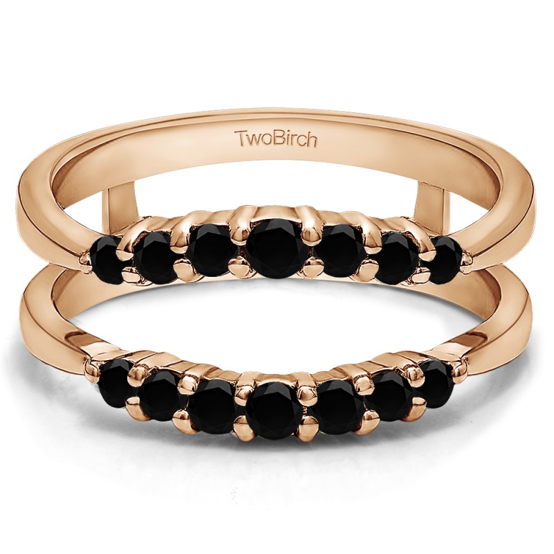 This wedding ring guard has 14 round, prong set stones. Each band measures 2 millimeters wide. This ring guard has 0.35 carats total weight.