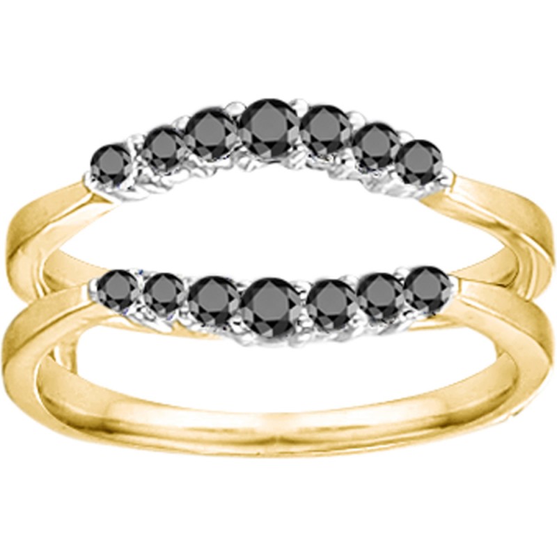 This wedding ring guard has 14 round, prong set stones. Each band measures 2 millimeters wide. This ring guard has 0.35 carats total weight.